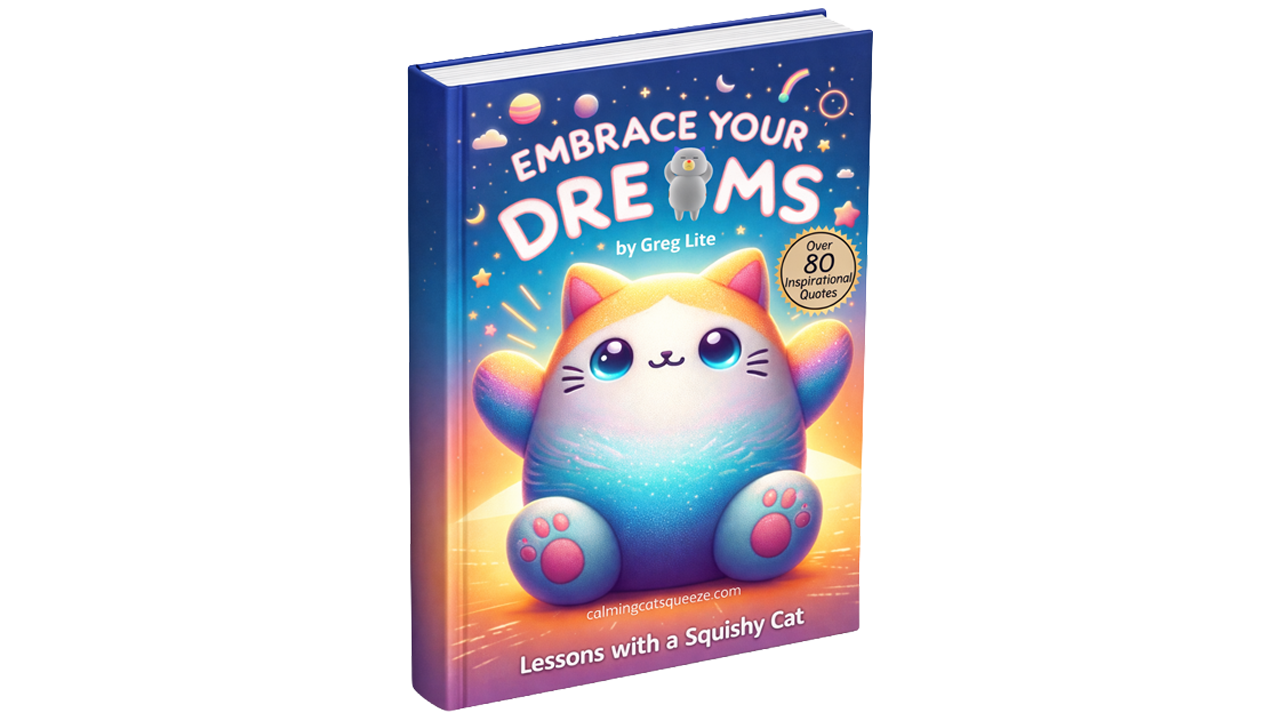 Embrace Your Dreams - Winky the Squishy Cat's Book of 80 Inspirational Quotes. Let Winky’s gentle wisdom brighten your day! This delightful collection of quotes is packed with encouragement and positivity, each page featuring Winky's signature charm.